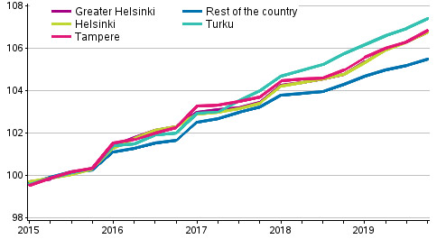 According to those numbers, Vantaa (+7.8%), Turku (+7.4%) and Tampere (6.9%) are the large towns where rents of non-subsidized dwellings increased most in the last quarter of 2019 compared to 2015.