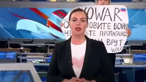 Ovsyannikova, an editor on Russian state television, held up a placard to the camera against the war in Ukraine behind the Channel One newsreader during the Monday evening broadcast. The placard also warned viewers they were being "lied to."